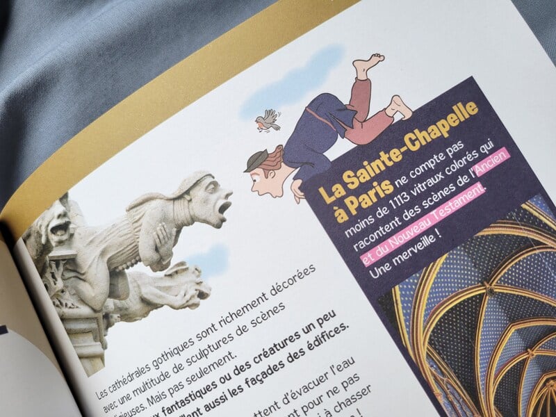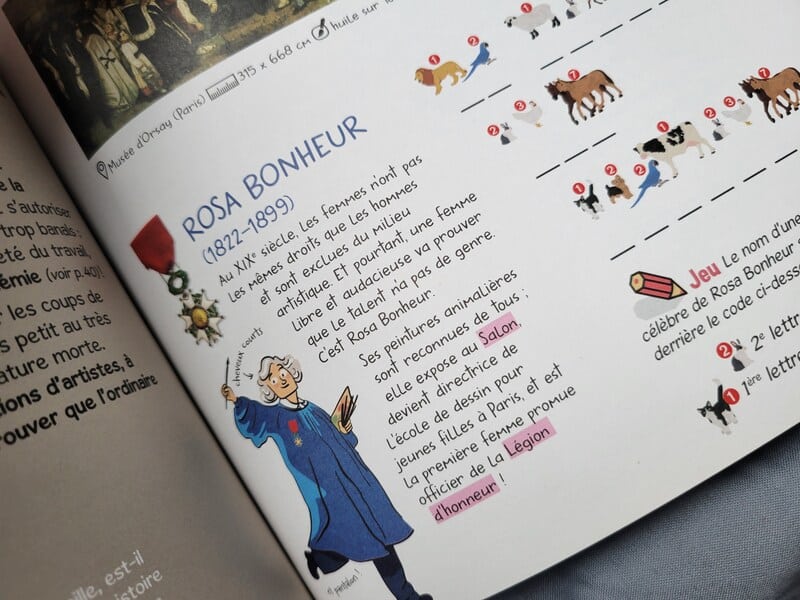 Les textes, assez denses, sont émaillés de photos d’œuvres, d’illustrations et de courtes anecdotes pour faire un tout foisonnant qui donne envie de s’y plonger ! Quelques jeux rapides se sont aussi glissés dans les pages, rappelant l’ADN de cette maison d’édition : ici, on apprend toujours en s’amusant !