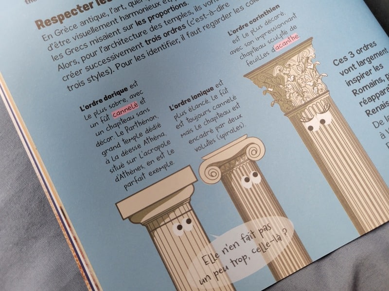 Quand j’étais enfant, j’aurais adoré avoir un livre dans ce genre. Allez savoir pourquoi, j’étais la seule dans la maisonnée à tomber en extase devant une peinture ou une sculpture. Dès petite, j’aimais aussi les vieilles pierres plus que les poupées Barbie ! Au fond, je pense que j’ai eu ce goût de l’art grâce à mon grand-père, à son incroyable bibliothèque, aux sculptures qu’il faisait en bois d’olivier ou encore à ses dessins épurés à l’encre de Chine. Je me plongeais avec les yeux gourmands dans des ouvrages d’art aussi lourds qu’un bottin (les anciens savent de quoi je parle !) et pas du tout adaptés aux enfants.
