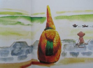 Tout ça pour vous dire, que je suis tombée sous le charme de « l’histoire singulière du portrait en pied du gouverneur militaire de Mandchourie ». Voilà un titre comme je les aime : à lui seul, il m’embarque dans une fable épique sortie de l’esprit malicieux de Frédéric Marais et du pinceau délicat de Thierry Dedieu.