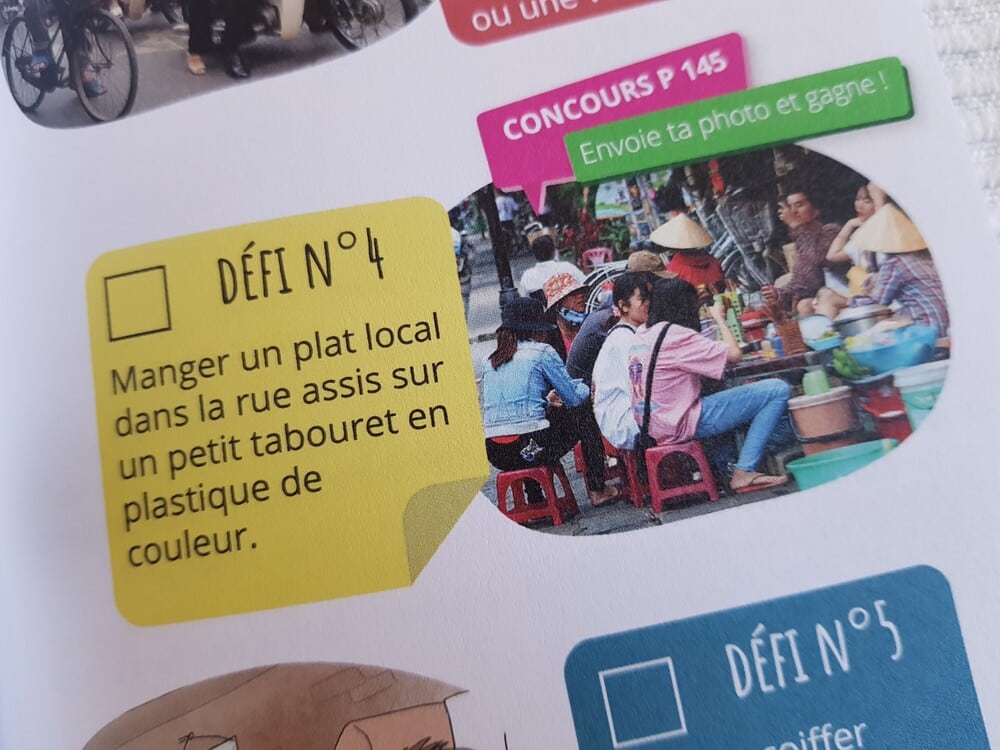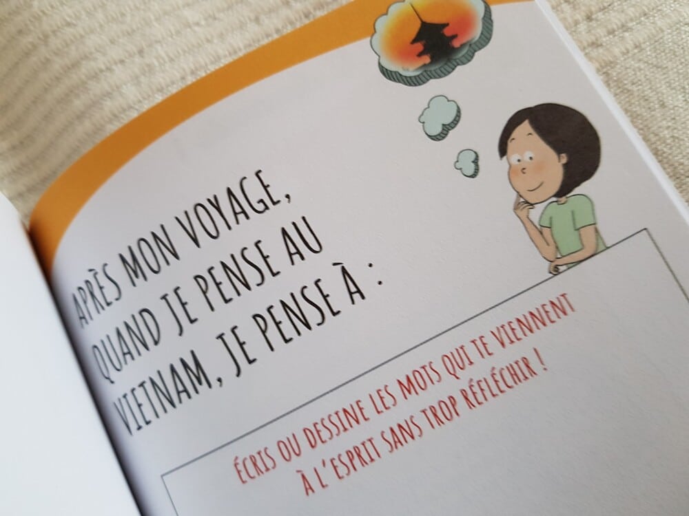 Autant le dire tout de suite, ce guide de voyage pour enfants sur le Vietnam est un coup de cœur. J’aurais aimé avoir ce genre de carnet quand mes enfants étaient plus jeunes. D’ailleurs, je leur confectionnais des carnets avec une compilation de jeux, histoires, dessins, informations pratiques sur notre destination de voyage sur des feuilles A4 que je reliais amoureusement avant le départ. Dans « Mon carnet de voyage : Vietnam », j’ai retrouvé cet esprit de découverte et de partage ludique.